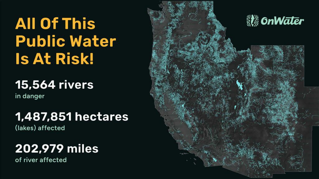 Already fired up? Good. The best thing you can do right now is call your senators and respectfully explain why this matters to you. Contact them today at (202) 224-3121. Don’t know who they are? Want to understand what’s going on? Keep reading. At onWater, we build tools that make it easier for people to access the water, but we know maps alone aren’t enough. Public access to fish, paddle, and recreate depends on something more profound: the promise that public lands and waters stay in public hands. That promise is now under an IMMEDIATE threat. Three million acres is hard to picture until you realize it’s nearly the size of Connecticut. Now imagine Connecticut lifted off the map, chopped into parcels, and listed on a government auction site. These aren’t abandoned industrial sites or fringe scrublands. They’re prime slices of our shared natural infrastructure. These are the natural filters, buffers, and cooling systems that protect our rivers and lakes. They are also home to wild meadows, high-elevation forests, critical tributaries, and essential access corridors. This is land that frames some of the most iconic rivers and recreation destinations in the country. Lose the land, and we risk losing the forest canopy that cools streams, the access trails that lead to headwater creeks, and the very ground that filters the water before it ever hits a riverbed. 1,487,851 hectares (lakes) at risk 202,979 miles of river at risk 15,564 rivers at risk That’s the big picture. Zoom in, and you’ll find river and lake access points that have served the public for generations. Maybe it’s the pullout you’ve used for years. Perhaps it’s the shady bend where your kid caught their first fish. Now, imagine a FOR SALE sign standing between you and the water. Your Waterways Will Be Affected. Even If You Don’t Know It Yet. The actual danger of this proposal lies in its stealthy nature. No map says, “Your favorite trail will be sold.” No meeting that announces “this ramp you launch from every June is gone.” However, an analysis of the affected parcels reveals just how close to home this is. These lands are not isolated. They are part of the recreation corridors that connect the West. And even if a sale does not cut off a trail or access point directly, the water that flows through these parcels continues to move. It continues downstream into the rivers, reservoirs, and communities we all rely on. Anything that happens upstream, whether it is roadbuilding, clearcutting, drilling, or grazing, ends up in the places we fish, paddle, and drink from. WASHINGTON 37,538 hectares (lakes) affected 10,677 miles of river affected 1,707 rivers in danger OREGON 94,380 hectares of lakes affected 30,506 miles of rivers impacted 3,876 rivers at risk CALIFORNIA 262,162 hectares (lakes) affected 24,261 miles of river affected 2,859 rivers in danger IDAHO 148,581 hectares (lakes) affected 31,930 miles of river affected 3,891 rivers in danger NEVADA 118,341 hectares (lakes) affected 16,989 miles of river affected 1,420 rivers in danger ARIZONA 28,131 hectares (lakes) affected 12,728 miles of river affected 1,060 rivers in danger NEW MEXICO 7,612 hectares (lakes) affected 9,862 miles of river affected 877 rivers in danger UTAH 479,323 hectares (lakes) affected 13,505 miles of river affected 1,310 rivers in danger COLORADO 29,923 hectares (lakes) affected 25,201 miles of river affected 2,754 rivers in danger WYOMING 55,150 hectares (lakes) affected 27,602 miles of river affected 2,222 rivers in danger Looking closer: • In Oregon, parcels intersect roads that lead to popular Deschutes River boat launches. • In Colorado, eligible lands border the upper Gunnison basin and public trails used by anglers and hikers. • In Idaho, tracts include land along the Lemhi and Pahsimeroi Rivers, which are key spawning grounds for salmon. • In California, some parcels sit next to Lake Tahoe National Forest lands that anchor trail systems and access points. These are backyard recreation spots for some and bucket-list destinations for others. They are not remote wilderness outposts. They are the lands that quietly support everything we do outside, from family fishing trips to overnight rafting adventures. When public land is handed over to private interests, access is lost, infrastructure deteriorates, and ecological protections are compromised. And too often, the public does not realize what was lost until it is gone. A False Bargain: Billions Lost, Not Gained Proponents of the proposal argue that selling off land will help reduce the federal deficit or generate funding for housing development. But these claims fall apart under scrutiny. According to independent estimates, the total revenue expected from this three-million-acre sale is at most $ 10 billion over ten years. Compare that to what public lands and clean water already generate according to the Outdoor Industry Association: ● The U.S. outdoor recreation economy contributes $1.2 trillion annually. ● It supports over 5 million jobs across the country ● The Colorado River Basin alone sustains 1.4 trillion dollars in economic output and 16 million jobs across multiple states Much of that value starts with clean, accessible water. Whether it’s fishing licenses, rafting permits, or brewery tourism tied to river corridors, water is an economic engine. A one time revenue injection of 10 billion dollars is a rounding error compared to the recurring value these lands already create in outdoor spending, in water supply, and in ecosystem services. This isn’t fiscal responsibility. It’s a short-sighted liquidation of national assets for pennies on the dollar. Where onWater Stands At onWater, we didn’t build apps to show people where to fish and paddle. We built a platform to help people understand, access, and protect the waters that define their lives. Our commitment to Fishing and Paddling Access for All is not a tagline. It’s a principle built i